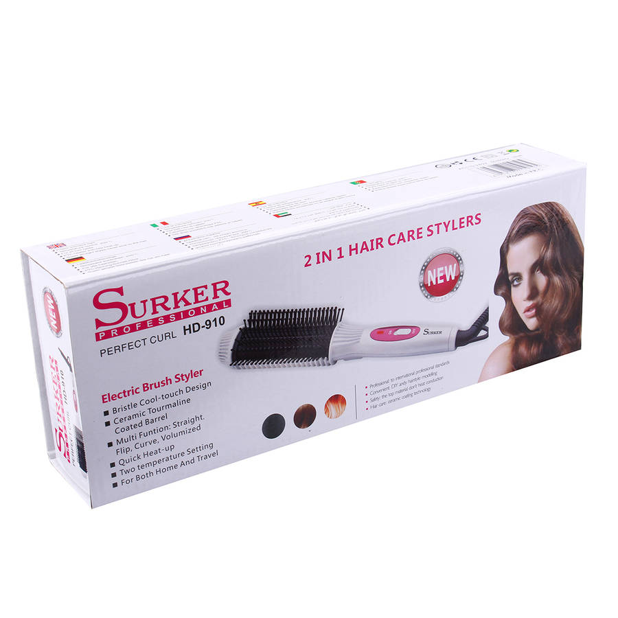 SURKER 110V-240V 2 in 1 30W 360 Rotatable Electric Hair Curler Straightener Styling Brush Comb