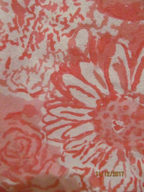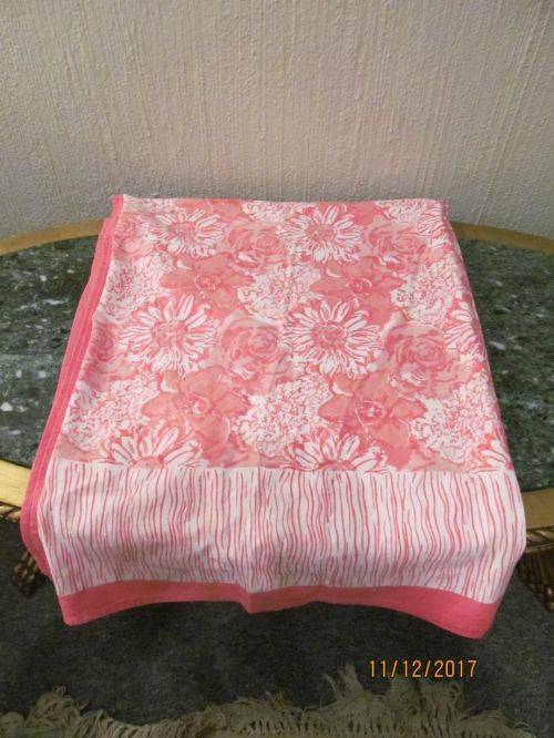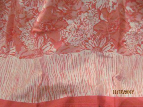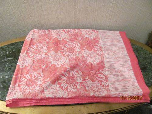 THE ITEM IS HIGH QUALITY COTTON DYED FLAMINGO PINK WITH PURE WHITE FLORAL AND LINEAR PATTERNS ADORNING THE ENTIRETY. ITS MANUFACTURED BEAUTY GIVES IT THE EDGE IN HOME DECORATION