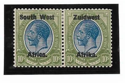 SACC 25. 10 Shillings Mint - Hinge remainder. Please note that the bottom perfs have separated and the hinge is keeping the top from splitting. Please bid accordingly.