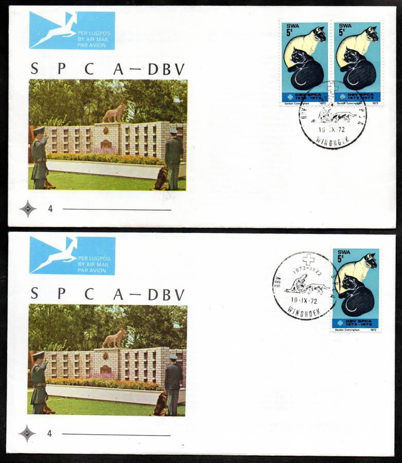 SWA 1972 centenary of SPCA FDC unaddressed with 'two cats' + normal FDC - CV R1400 - as per scans.