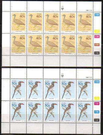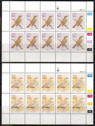 SWA 1988 BIRDS OF SWA SET OF 4 MNH FULL SHEETS OF 10