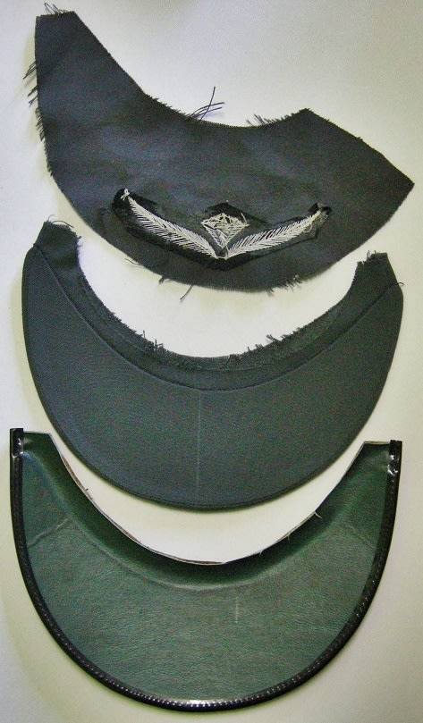 SWA Police Cap Peaks x 2 & Part of a Peak (1 x Silver Wire on Plastic & 2 x Silver Wire on Material)