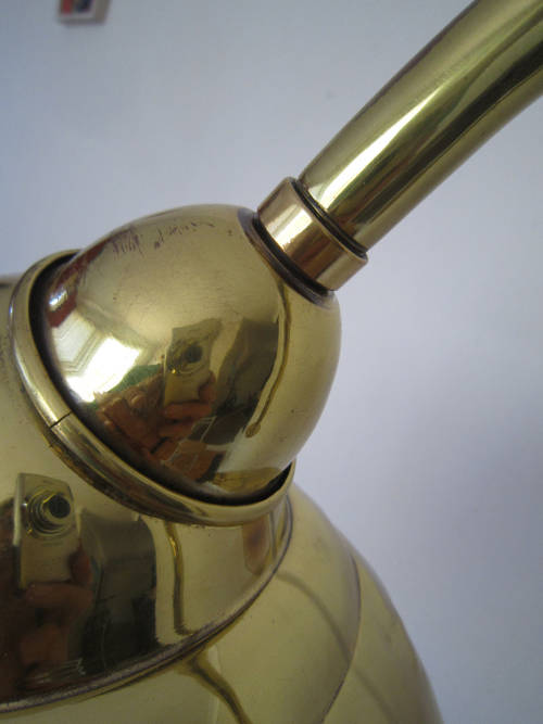 Important note: These lamps are old and as can be seen in the photos there are a few dents in the lamp shades. Being brass, these dents may be removed by a skilled person if desired.