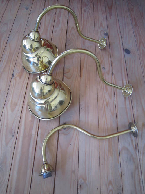 Two vintage swan neck pub/shop lights with one spare stem.
