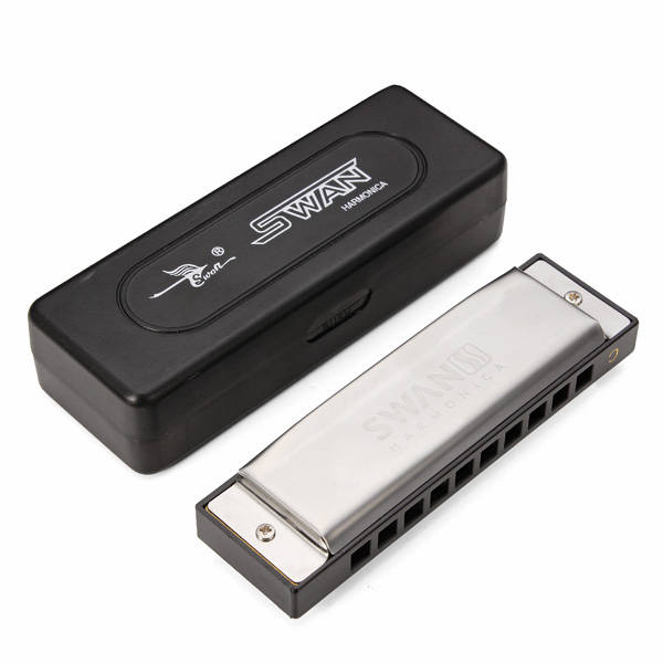 Swan SW1020H 10 Hole Blues Harmonica Key Of C Silver