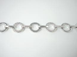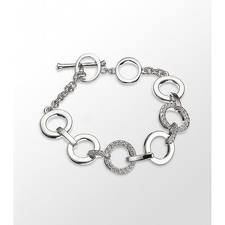 This rhodium-plated bracelet has alternating circular links that shine in clear crystal pavé. It comes with a toggle closure.