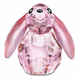 This retired Swarovski crystal Lovlot rabbit is called Bella and she belongs to the City Park theme. Sugar is sweet and so are you! Bella the rabbit is sure to win your heart as you look into her Jet Hematite crystal eyes filled with innocence. Her body, head, and tail are in fully faceted Light Rose crystal and her gorgeous long ears are in Light Rose crystal with a matt inner surface. Her friends love her for her sweet nature. Bella the Rabbit and Benny the Bunny make a fabulous couple. (Benny is one of the Lovlot Circus troupe).