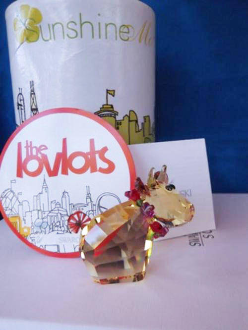 Swarovski crystal code numbers: 1 093 651 / 1093651 /9100 000 335 You are my sunshine! Sunshine Mo brings that special holiday feeling to Lovlots City! She sparkles in vibrant Jonquil crystal with Peridot crystal horns and Light Smoked Topaz crystal ears. Wearing a beautiful necklace in a stunning gradation of tropical crystal colours, Sunshine Mo radiates the playful spirit of summer. This adorable creation was only available to on-line customers on the Swarovski website during 2011, and is now retired from production. Size 4.6 x 4.5 cm Presented in new condition in original box with certificate of authenticity.