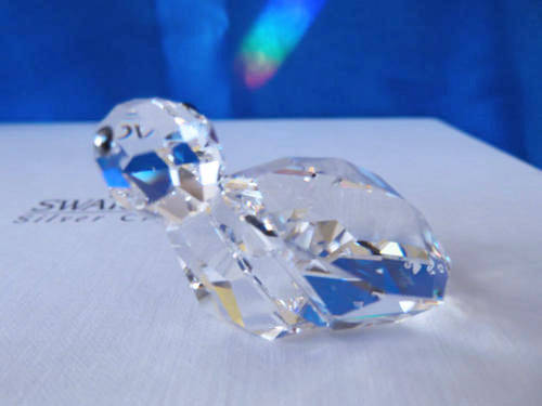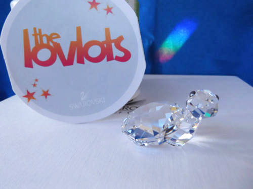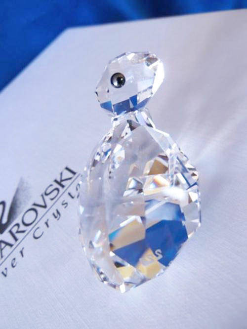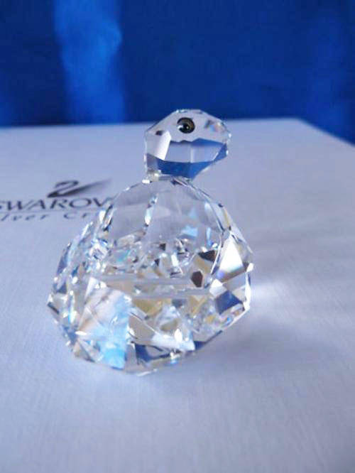 This retired Swarovski crystal Lovlot turtle is called Win win. Her character stands for speed, freshness and future. Designed by Elke Kumar, Winwin is 1 ¾ (44mm) long and is made in clear crystal with black eyes. Winwin was introduced in 2006 and retired in 2007.