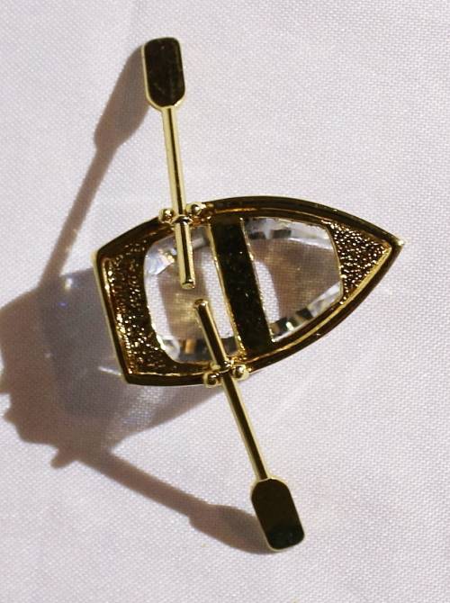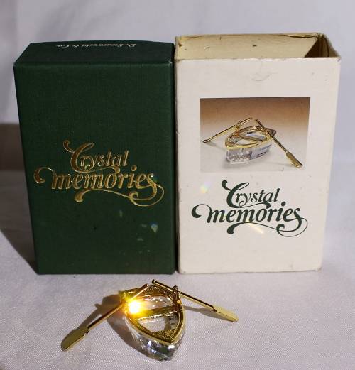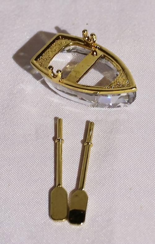 This retired Swarovski Crystal Memories rowboat was part of the “In the Realms of Fantasy and Fairy Tales” theme. The metal detail is gold plate, and the oars are removable from the boat.