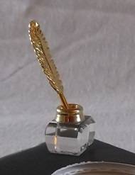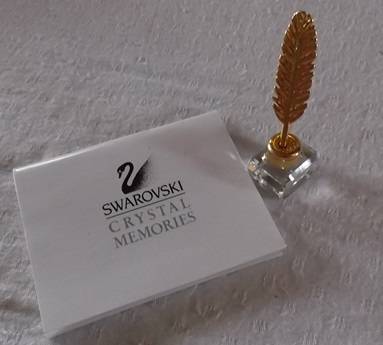 Highly collectible. Swarovski produced the ink well in 1994 and retired it in 2004. The quill and the top of the ink well are 18ct gold plated.
