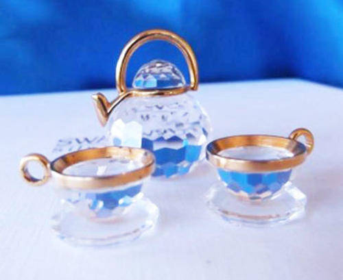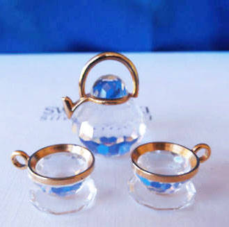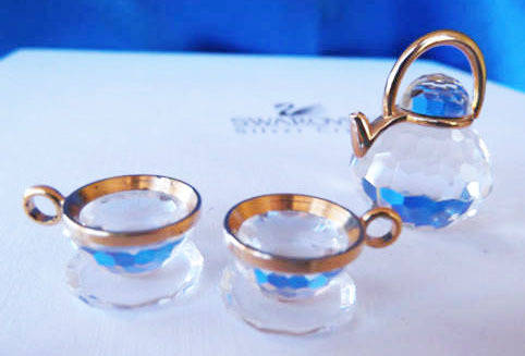 THIS SWAROVSKI 3 PIECE MINIATURE TEASET WAS PART OF THE SWAROVSKI CRYSTAL MEMORIES COLLECTION.