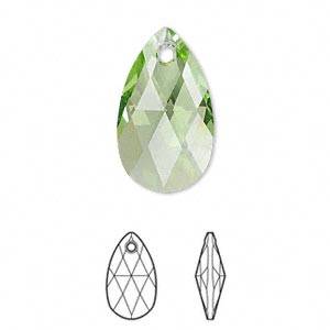 The stunning pear-shaped drop from Swarovski, the world's leading crystal manufacturer, has precision-cut facets and uniform color to create a sparkling shower of light reflections. A wide, beveled drill hole eliminates fraying, reduces chipping and can accommodate heavier cord.