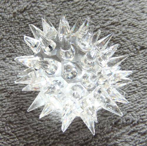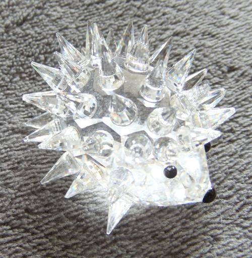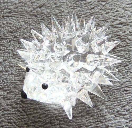 Made from clear crystal with pointed spines, black eyes and nose, this hedgehog does not have whiskers and has a more oval shaped body that the hedgehog with whiskers, it also has around 48 spines