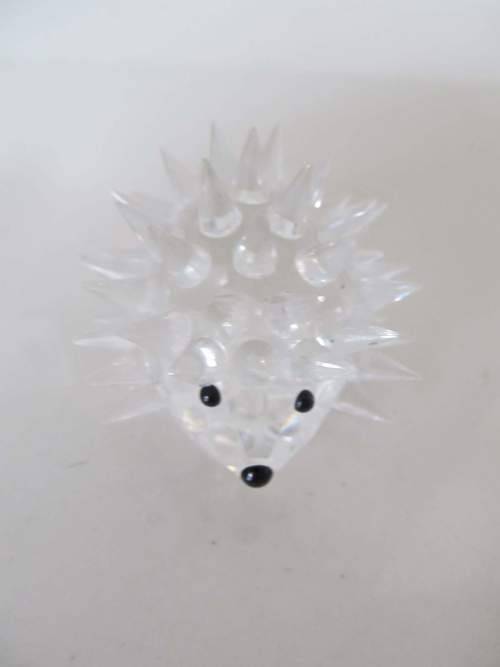 A RETIRED SWAROVSKI CUT CRYSTAL MEDIUM HEDGEHOG FIGURINE WHICH BELONGED TO THE "IN THE SUMMER MEADOW" THEME GROUP AND WAS LATER MOVED TO THE "IN THE SECRET GARDEN" THEME GROUP. CRAFTED FROM CLEAR CRYSTAL WITH POINTED SPINES, BLACK EYES AND NOSE THE FIGURINES DESIGNER WAS MAX SCHRECK AND IT WAS INTRODUCED IN 1987