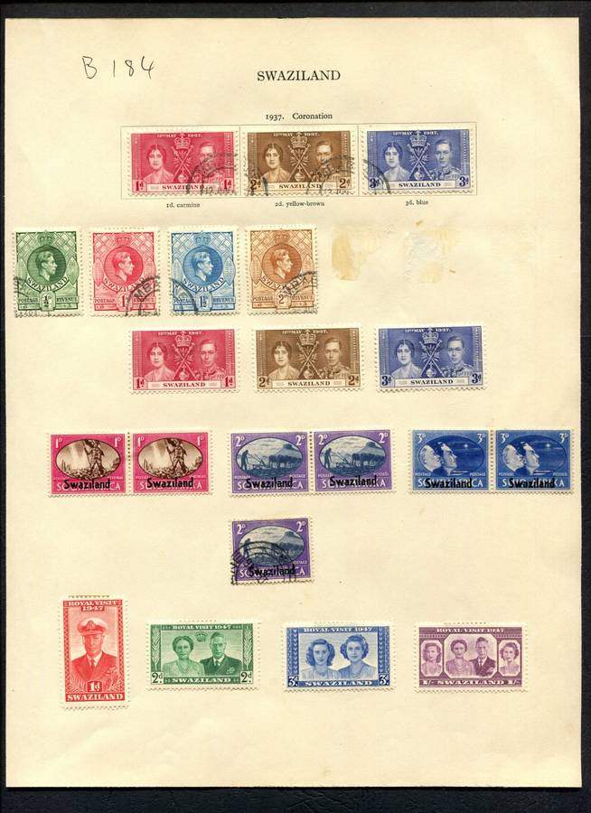 Swaziland - 21 Stamps Mounted (Hinged) on Old Album Page