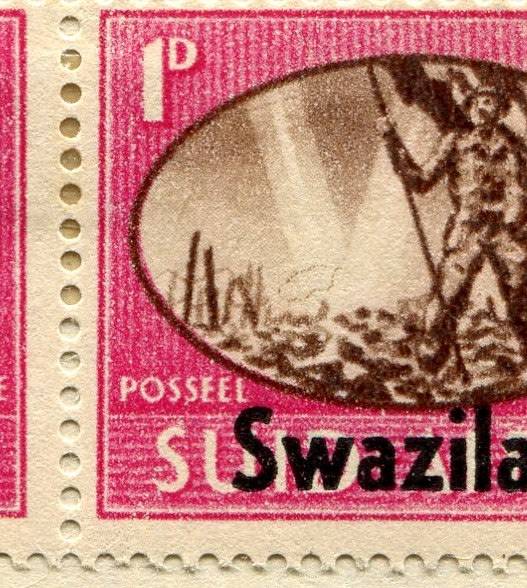 Swaziland - 6 Stamps Mounted (Hinged) on Old Stock Page -1d `Barbed Wire` Variety