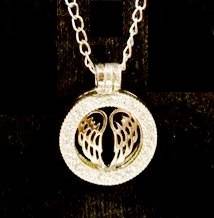 Sweater Necklace No Glass Floating Angel Wings Disc Locket with Rhinestones on Chain