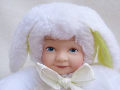 ONLY 22CM TALL IN SITTING POSITION WITHOUT MEASURING EARS AND IN VERY GOOD, CLEAN CONDITION WITH ORIGINAL ANNE GEDDES LABEL - CUTE AND COLLECTABLE! REFER IMAGES