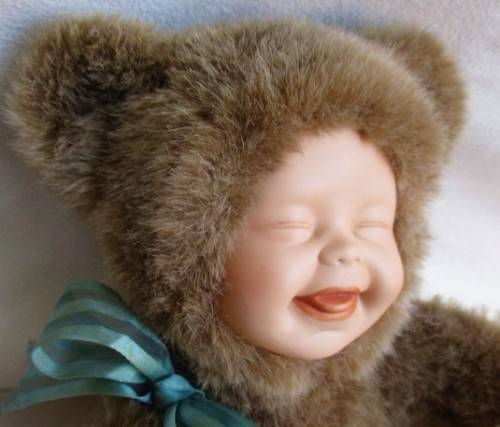 SWEET VINTAGE ANNE GEDDES-LIKE BEAR DOLL WITH PORCELAIN FACE!!
