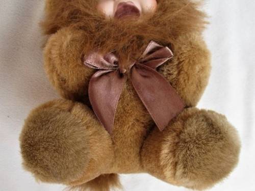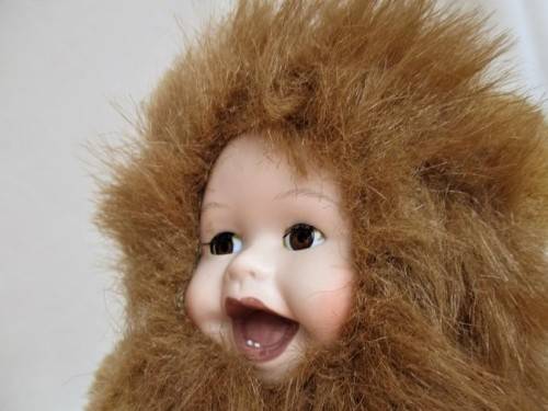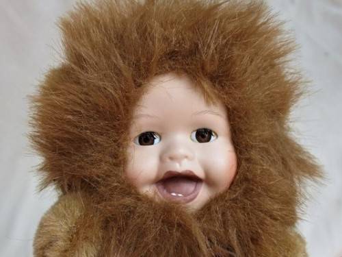 SWEET VINTAGE ANNE GEDDES-LIKE DOLL IN LION COSTUME WITH PORCELAIN FACE!!