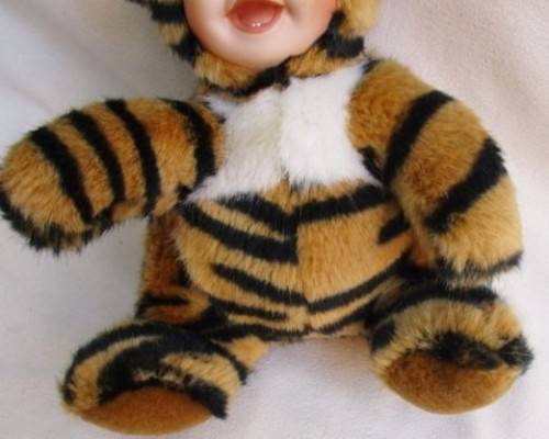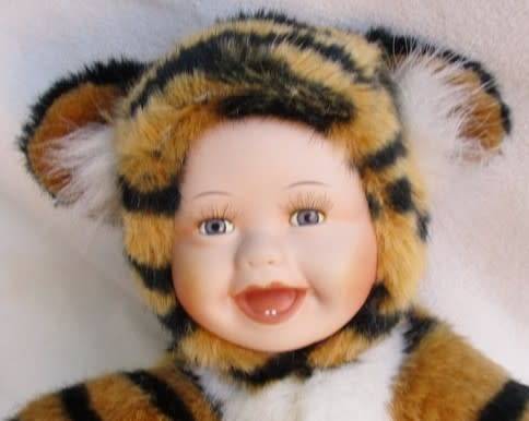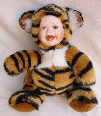 SWEET VINTAGE ANNE GEDDES-LIKE DOLL IN TIGER COSTUME WITH PORCELAIN FACE!!