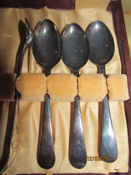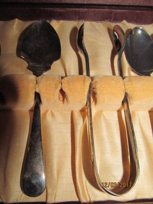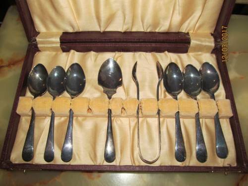 One Sugar Spoon stamped -- "EPNS" It is 12cm length..........3cm width of bowl at widest part..........1.2cm width of handle at dovetail