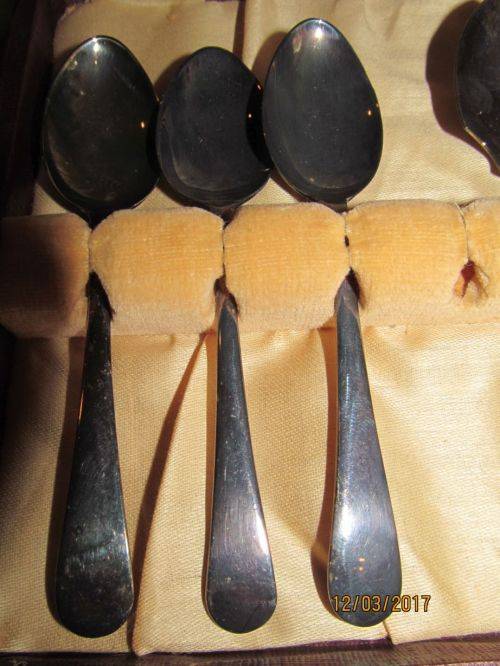 Consisting of Six Cake/Demitasse Coffee Spoons each stamped -- "EPNS" Each is 11.5cm length..........2.4cm width of bowl at widest part..........1.2cm width of handle at dovetail