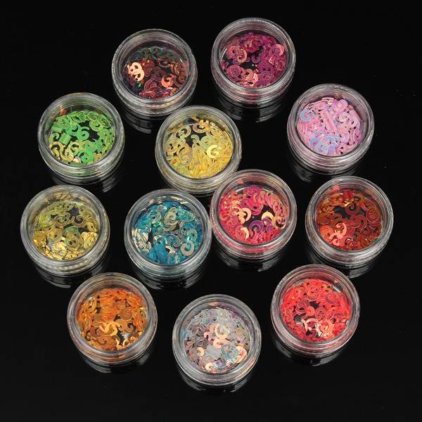 Features:The 12 Colors Swirl Shape Nail Art Glitter Sequins Pieces Decoration