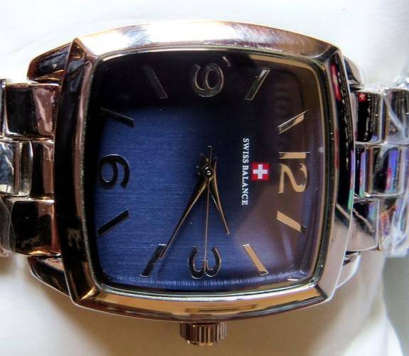 SQUARE BLUE DIAL WITH SILVER LETTERS AND HANDS