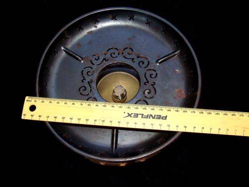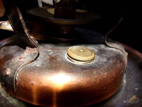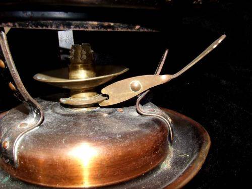 A very nice looking copper, brass & iron paraffin burner with a "volume control". Appears to be complete and working. Would need a good clean. Minor surface corrosion on the ferrous parts. An easy restoration/cleaning project. Paxi R50, Sapo R65, Postnet R99
