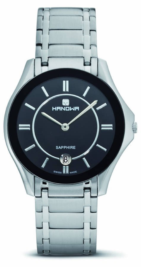 Hanowa Ascot Stainless Steel Black Dial Swiss Military Watch - NEW