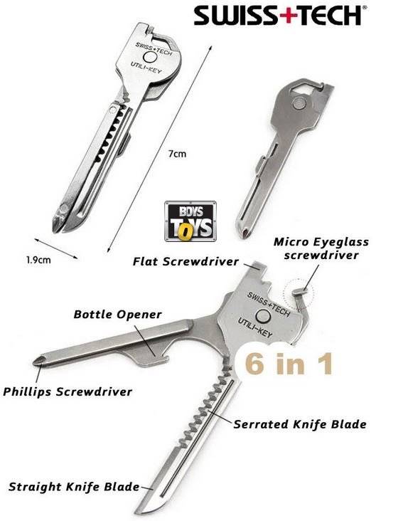 100% SWISS + TECH Utili-Key 6 In 1 Mini Multitool Keyring