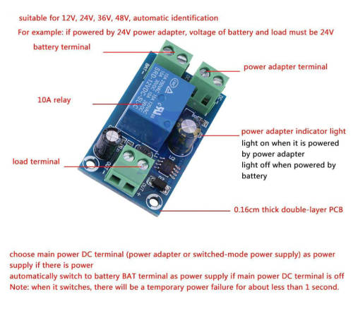Automatic Change Over Switch for Battery Charger 12-48V 10A: