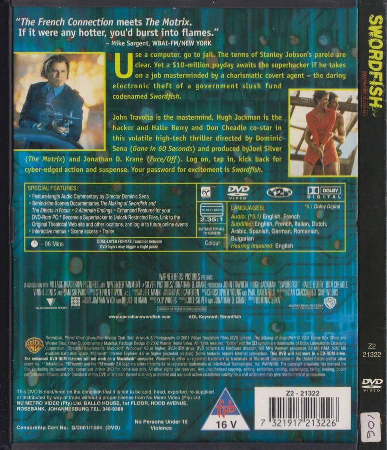 Swordfish (DVD) [Sticker on spine of carboard box)
