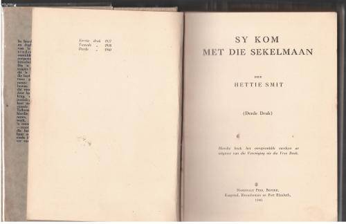 Derde druk, Nasionale pers, 1940, 186 pp. Hardeband met stofomslag, toon tekens van rakverweer met geringe ouderdomsvergeling. Name van vorige eienaars binne-in.