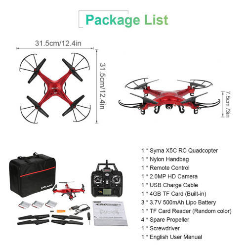 Syma X5C 2.4GHz 4CH 6-Axis Remote Control RC Quadcopter 2.0MP HD Camera Drone with GoolRC Nylon Handbag & Two Extra Batteries