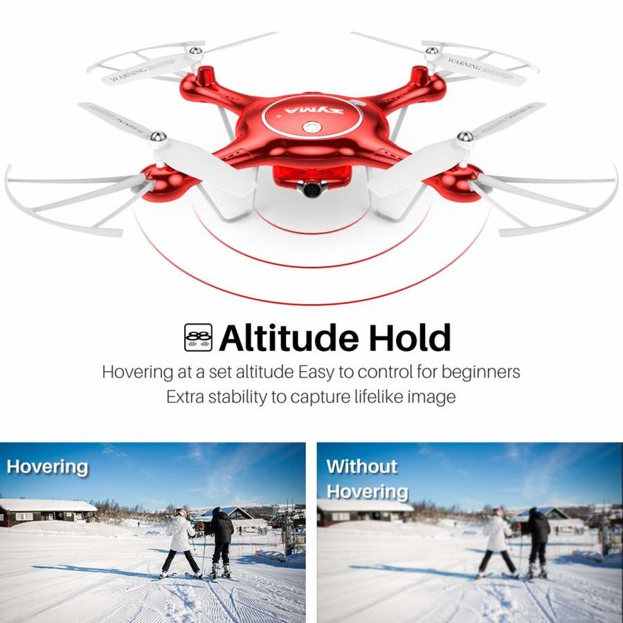 Altitude Hold: Altitude Hold enables drones to Auto-Hover. The drone can stay at current height when pilots' hands are off the controller making the drone fly at a steady height in the air
