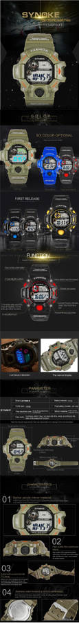 Specification: Item Type: Wrist Watch Dial Window Material Type:Glass Brand Name: SYNOKE Water Resistance: 30m (Living Waterproof) Movement: Digital Watch Clasp Type: Needle Buckle Clasp Style: Fashion & Casual & Sport Gender: Men Dial Display: Digital Feature: Water Resistance, Calendar, Alarm, Chronograph, Backlight, LED Display Case Shape: Round Band Material Type: Plastic Dial Diameter: About 52.61mm Dial Thickness: About 18.09mm Band Length: About 25.2cm Band Width: About 22.12mm