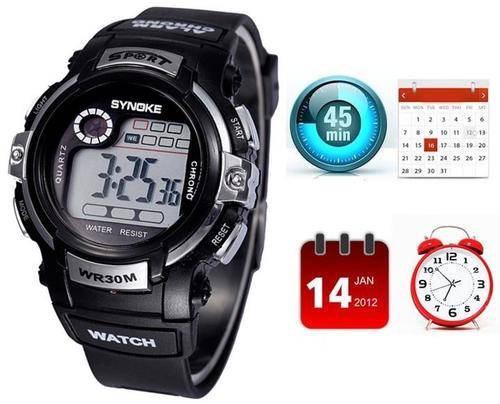 Synoke Chrono LED Sports Wrist Watch, Date & Time, Digital, Alarm, Stopwatch etc in Silver/Black