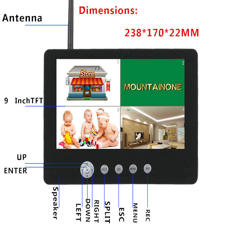 SYSD SY903E12 9inch LCD Monitor DVR Wireless Kit Home CCTV Security System with Two Digital Cameras