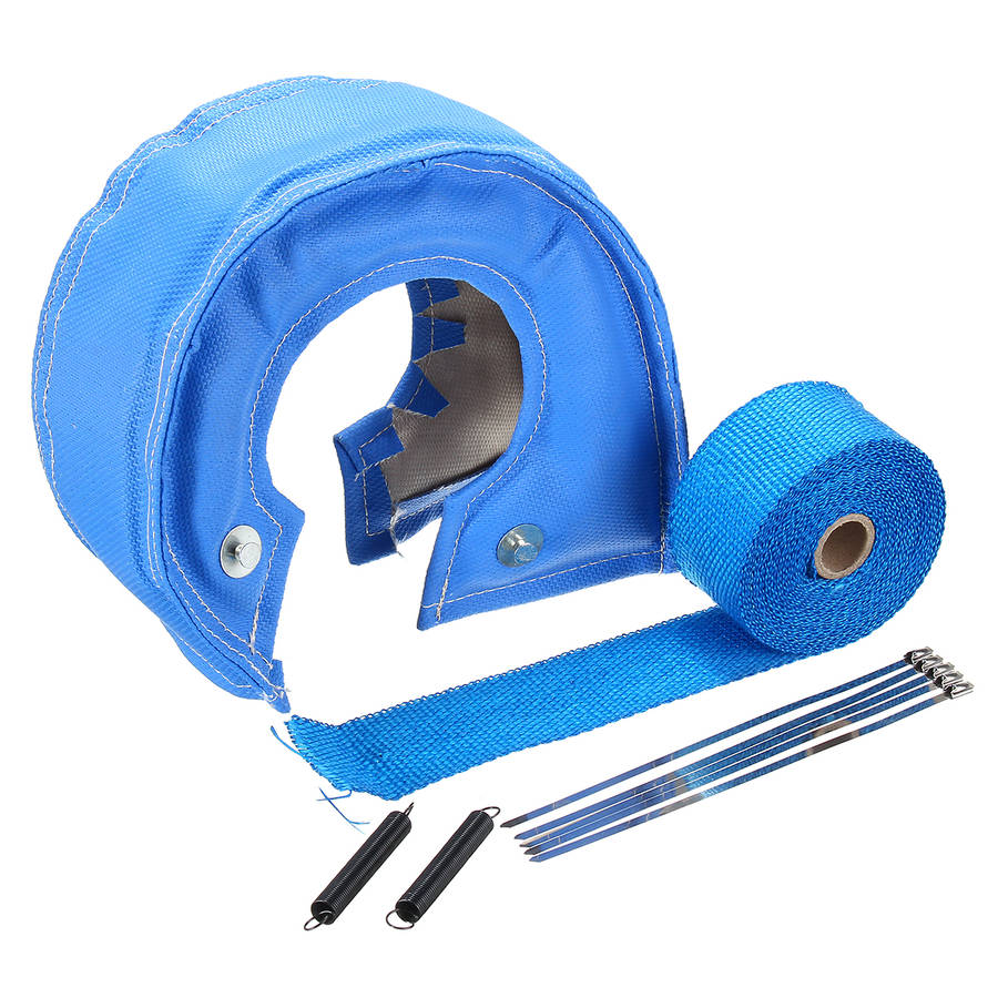 Description: T4 Turbo Heat Shield Blanket Cover with Exhaust Manifold Downpipe Wrap Kit Specification: Material:Glassfiber Fabric /Stainless Steel Color: Red, Black, Blue, Titanium Turbo Heat Wrap Circumference: 22 Exhaust Pipe Wrap Size: