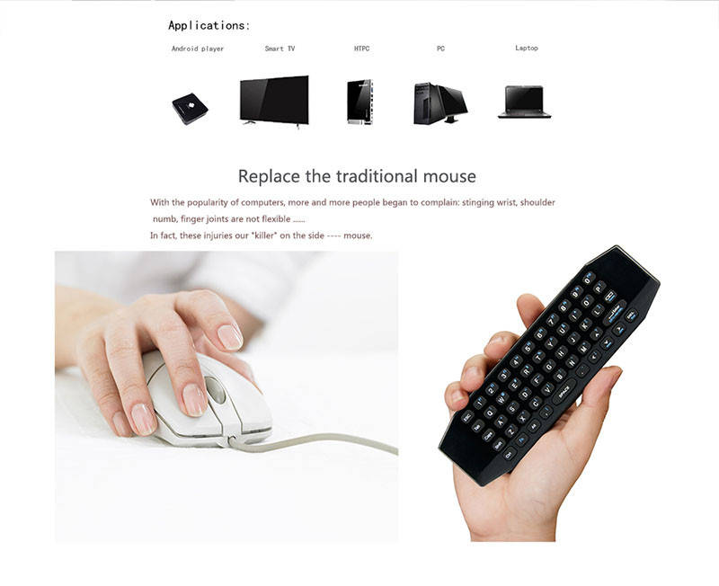 Multifunction Remote Controller Air-Mouse IR Remote Keyboard IR Learning Non-directional remote controll Anti-shake algorithm Air-mouse support Motion Sense Games