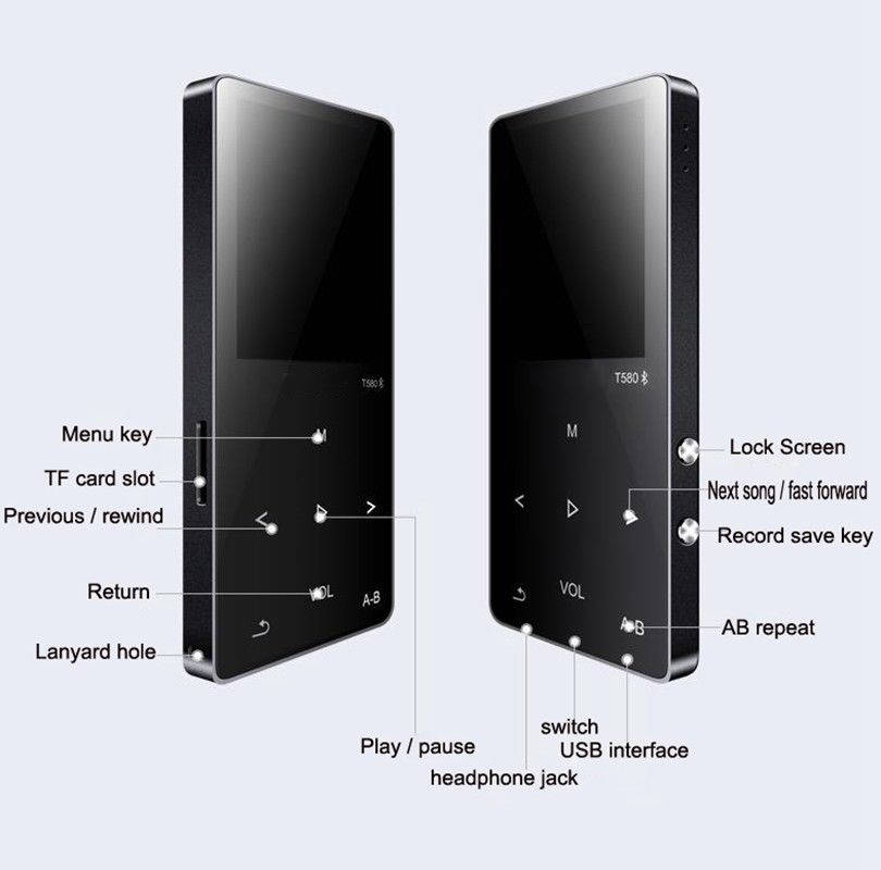 T580 Bluetooth HIFI MP3 MP4 Player 4-256GB Recording Pen Touch Button Suppor
