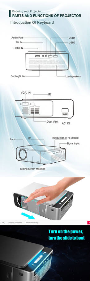 | Package Contents | Package Contents: 1 xProjector , 1 x Remote Control Without Battery, 1 x Chinese and English Manual, 1 x Power Cord, 1 x AV Cable |