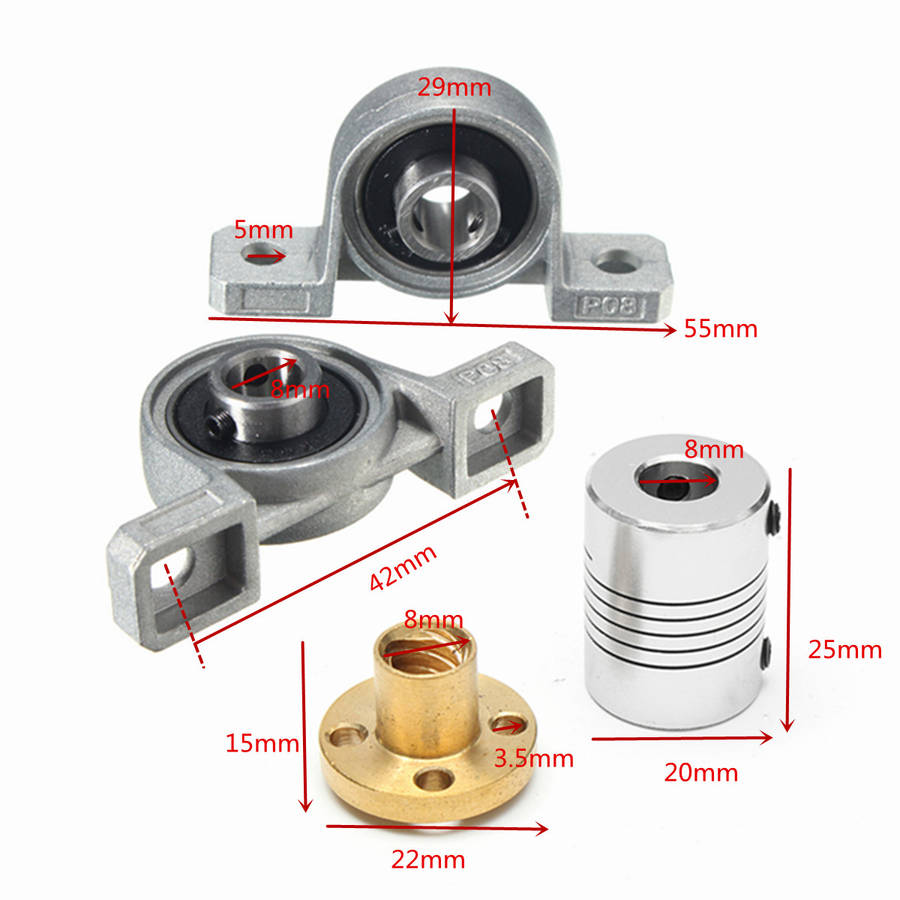 3D printer T8 1000mm Stainless Steel Lead Screw + Screw nut + Mounted ball bearing+Shaft coupling+Motor.