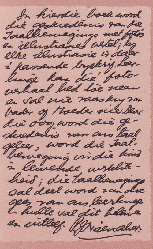 Taal & Beeld-Die Geskiedenis Van Die Afrikaanse Taalbewegings By PJ Nienaber, published in 1969?, large hardcover with no dustjacket, some ink spots on cover, ex library book so has all the stickers, stamps etc however all pages are intact and are quite readable. Note this is an Afrikaans book.