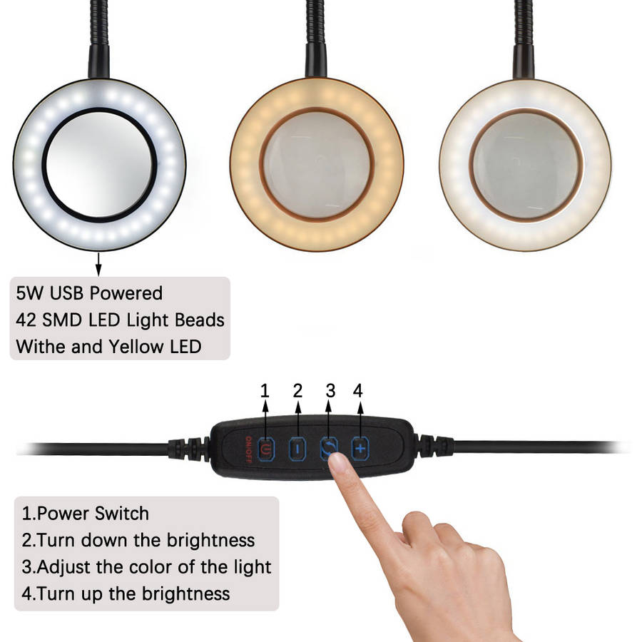 4. Magnifying glass with LED light, the color temperature of LED light can be adjusted in 3 steps and the brightness can be adjusted in 11 steps, it can meet various working environments.