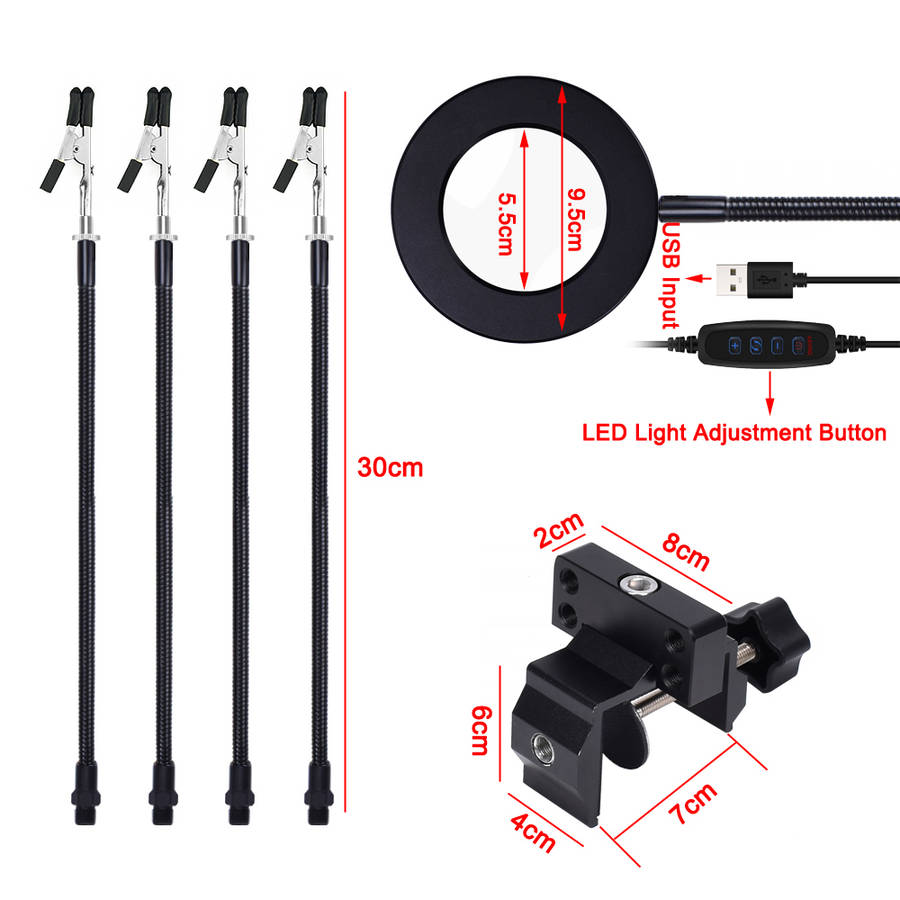 3. 5pcs Adjustable Flexible Universal Arms --Five flexible helping hands, Universal joint pipe, easily positioned where you want them. Eliminates the frustration of traditional helping hands.