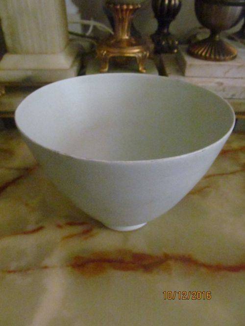 UNUSUALLY SHAPED CERAMIC BOWL - MILD GREY COLOR - NARROW BASE AND WIDE RIM